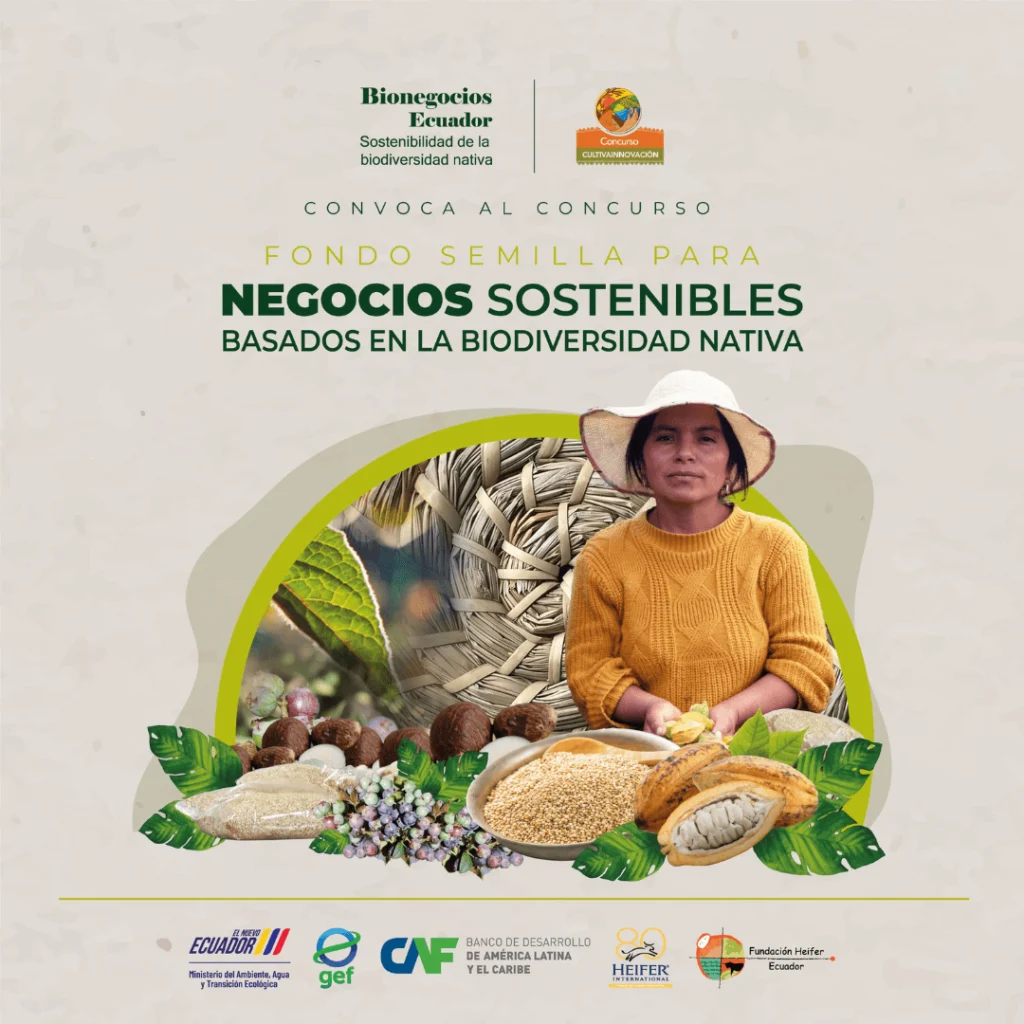 El concurso “Fondo semilla para negocios basados en la biodiversidad nativa”, impulsado por el proyecto Bionegocios Ecuador: sostenibilidad de la biodiversidad nativa, del Ministerio del Ambiente, Agua y Transición Ecológica (MAATE), ejecutado por la Fundación Heifer Ecuador, con recursos del Fondo para el Medio Ambiente Mundial (GEF), en colaboración con CAF – Banco de Desarrollo de América Latina y el Caribe; busca apoyar bionegocios que promuevan la innovación en el uso sostenible de la biodiversidad nativa en el Ecuador.